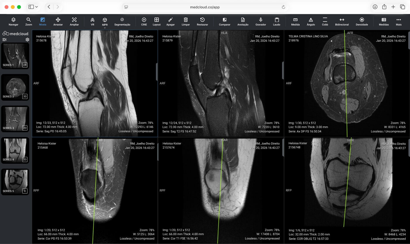 Utilize imagens de diferentes regiões anatômicas para ilustrar os achados diretamente em seus laudos, com a biblioteca de imagens especializadas.